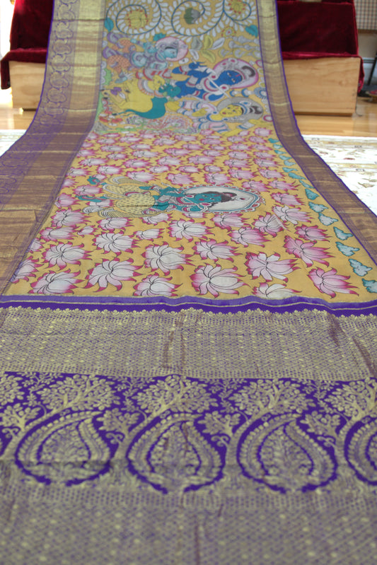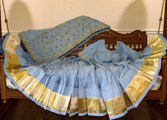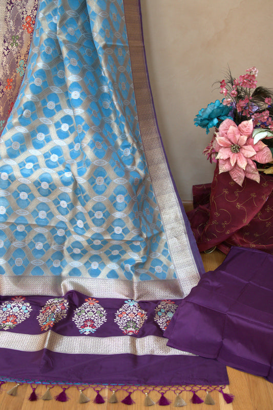 Baby Blue and Purple Kora Banarasi Silk Sari