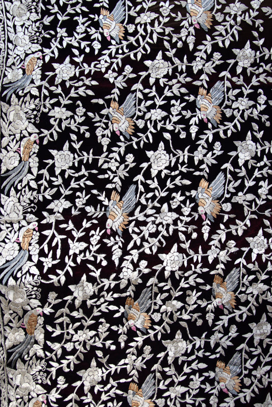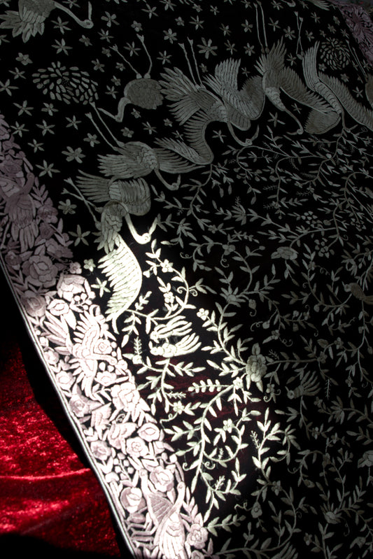 Baby Pink, Black, and White Heron Parsi Gara Dupatta